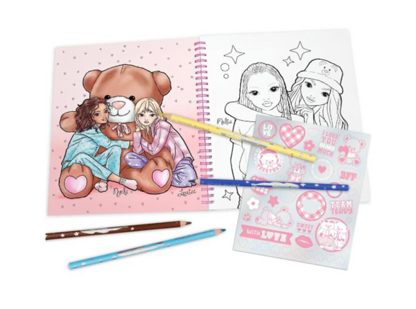 Das Malbuch aus der TOPModel-Serie Team Teddy hat 40 Ausmalseiten mit coolen Model-Motiven und vielen süßen Kuschel-Teddys. Mit dabei: ein Stickerbogen zum Verschönern der Kunstwerke.