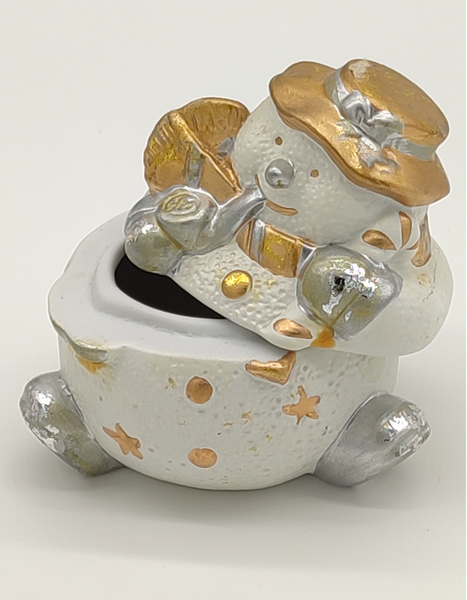 Schneemann-Dose, Material: Keramik, Farbe: weiß/ gold/ silber, Maße: 9 x 9 x 7 cm,