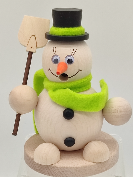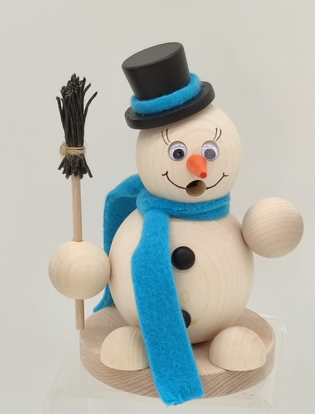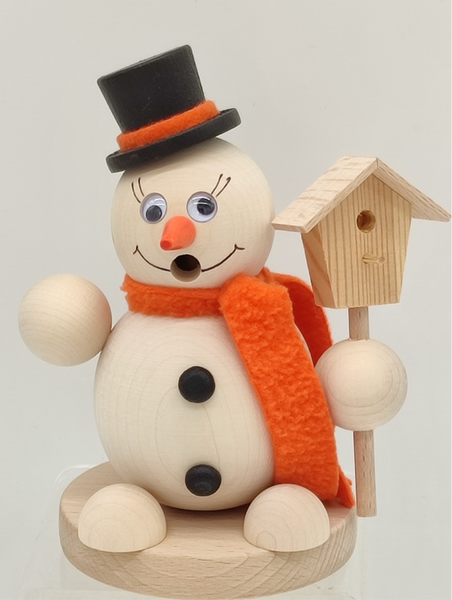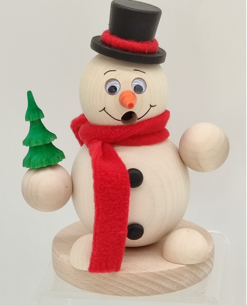 Räucherfigur "Schneemann mit Schal, Zylinder und Wackelaugen", Material: Holz natur belassen, Maße: 16 x 9,5 cm,