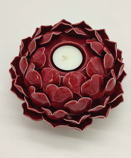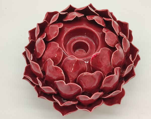 Boitze Große Keramik-Blüte für Teelichter und Stabkerzen rot