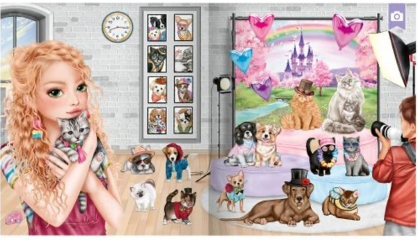 Die tierisch süße Stickerworld von TOPModel: Die 20 liebevoll illustrierten Innenseiten kann man mit 3 Doppelseiten voller niedlicher Hunde- und Katzensticker mit Leben füllen.