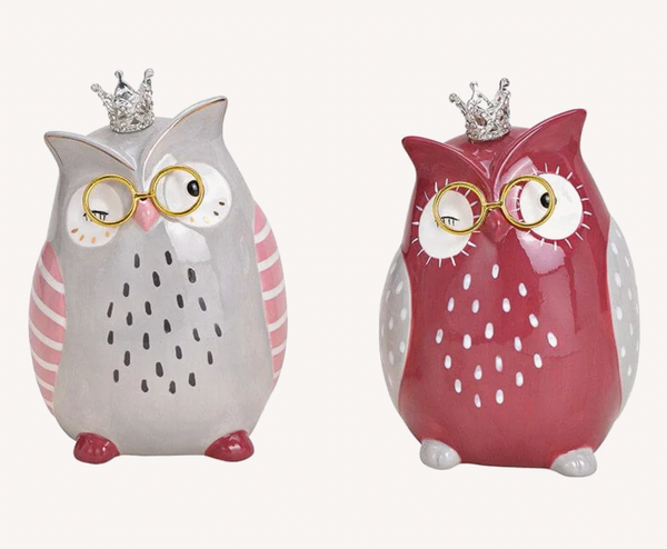 Wurm Keramik-Eule mit Brille und Krone 14x9 cm